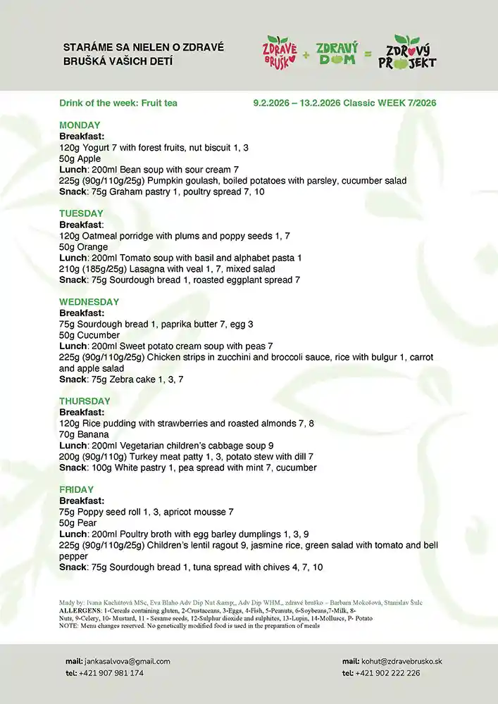 Nutritional advisers Eva Blaho and Ivana Kachútová ensure a balanced menu using the highest expertise, so every day has ample nutrients, minerals, and vitamins. Silvia Horecká, one of the leading figures in Slovak gastronomy, oversees the ingredients used and cooking process.